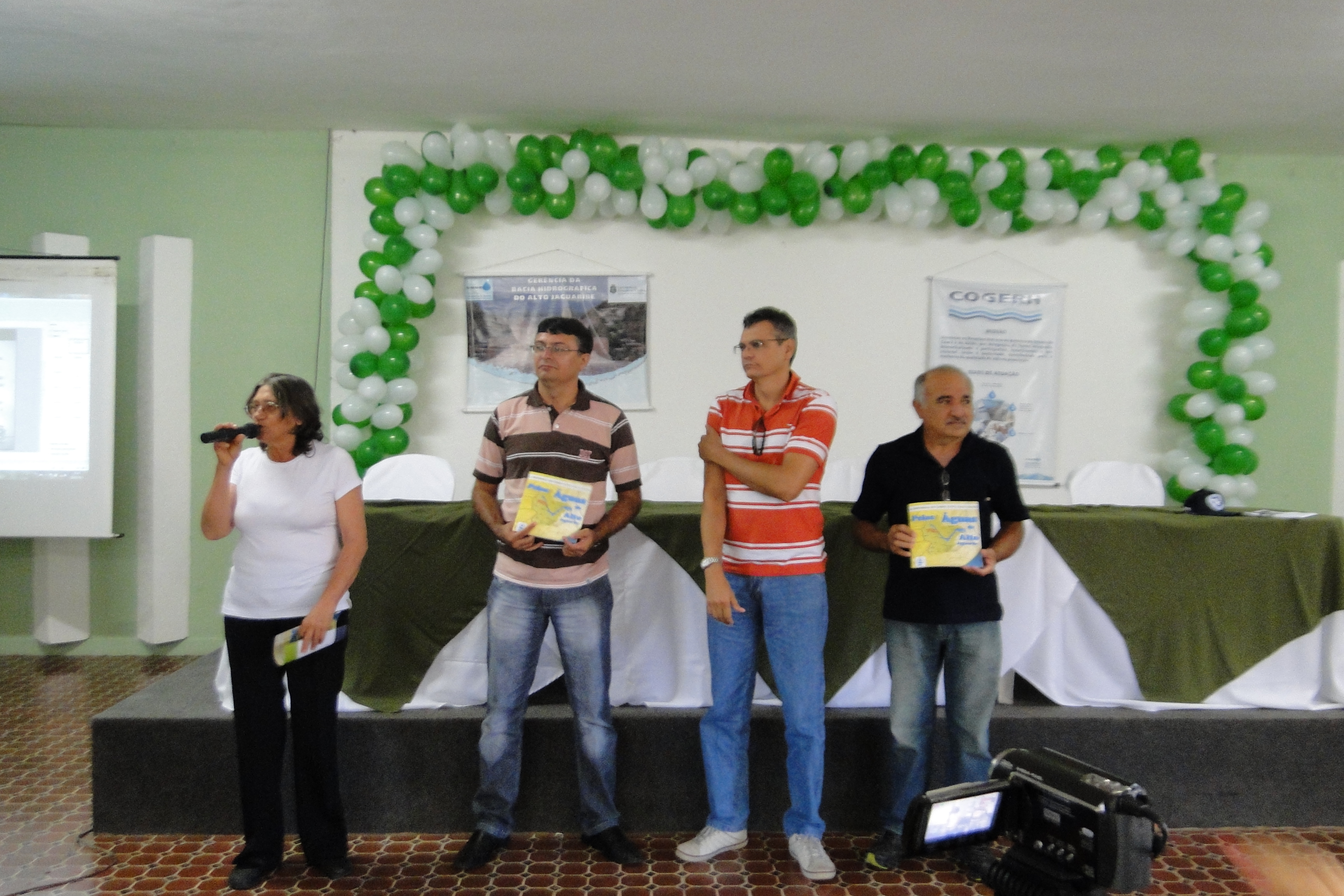 ” dos municípios do Alto Jaguaribe”. As concessionários SAAE – Serviço Autônomo de Água e Esgoto e a CAGECE – Cia. de Água e Esgoto do Ceará apresentaram: captação, tratamento, problemas ambientais, avanços e desafios no abastecimento humano dos 24 municípios da bacia do Alto Jaguaribe. Na oportunidade foi lançada a cartilha: Pelas Águas do Alto Jaguaribe. Além dos representantes dos segmentos de usuários, sociedade civil e poder público, comparecem ao evento alunos de escolas do município de Iguatu.